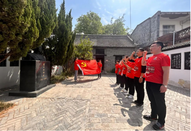 在董天知將軍的雕像前,參加活動的黨員整齊列隊,懷著無比崇敬的心情,莊嚴地舉起右手,重溫入黨誓詞。“我志愿加入中國共產黨……”鏗鏘有力的誓言響徹故居上空,久久回蕩。這不僅是一次對革命先烈的莊嚴告慰,更是黨員們對自己初心使命的再次堅定與強化。